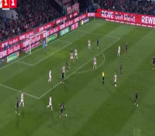 第45+5分钟,将功补过!奥利塞助攻格纳布里小角度破门,科隆1-1拜仁