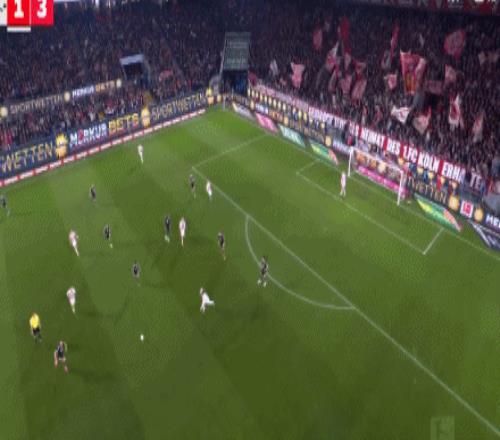 第84分钟,凯恩后场长传,迪亚斯横传助攻卡尔低射破门!科隆1-3拜仁