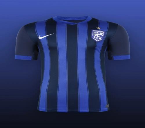 新赛季武汉三镇主场球衣采用经典的蓝色深浅条纹设计,象征着长江汉水在此交融汇聚,铸造并传承着武汉独特的足球文化与精神基因。
